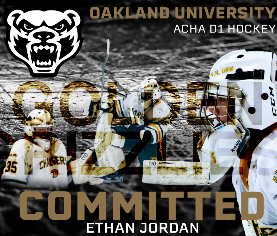 Rochester, MI- Oakland ACHA DI Hockey general manager has announced that goalie Ethan Jordan has committed to Oakland. Jordan becomes the latest member of the 2025 recruiting class. ” I am super excited to be committed to an excellent program that shows their true colors both on and off the ice!” Jordan stated.